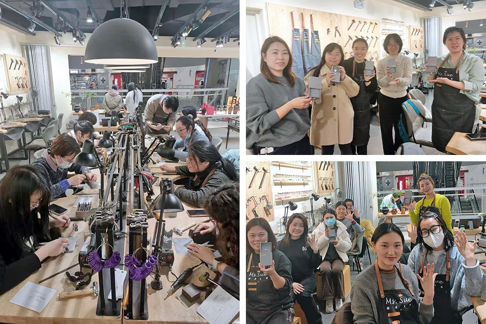 3月4日和3月5日,上海建科院的女職工們?cè)趯I(yè)技藝?yán)蠋煹膸ьI(lǐng)下,通過鏨刻、雕琢等工藝,將銀片打磨成獨(dú)一無(wú)二的戒指或吊墜,親身感受古老銀飾“以紋載史”的文化內(nèi)涵,沉靜專注中仿佛觸摸到了時(shí)間的溫度。