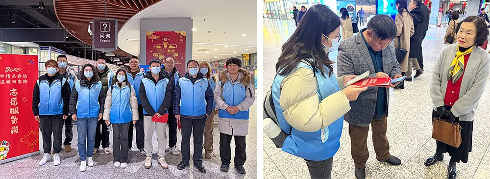 在今年節(jié)后開工高峰、日均客流量超 20 萬人次的上海虹橋火車站里,人潮川流不息,涌動的人群中,那抹亮眼的 “志愿藍(lán)” 格外矚目。上海建科院青年志愿者們響應(yīng)市委社會工作部“申情系春運 溫暖回家路”志愿服務(wù)專項行動,從清晨9點至17點堅守崗位,用耐心與微笑為旅客指引方向、解答疑惑。志愿者張子燕感嘆道:“這次志愿活動,不僅讓我學(xué)會了如何在復(fù)雜的環(huán)境中迅速理清思路、解決問題,更讓我深切感受到人與人之間溫暖的傳遞。今后我也將帶著這份溫暖繼續(xù)前行,在更多志愿服務(wù)中發(fā)光發(fā)熱。”
