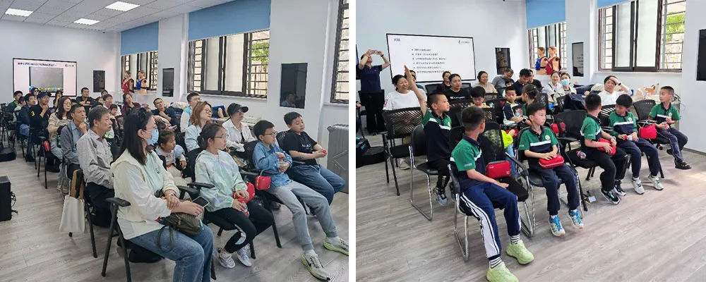 活動設置四大核心環(huán)節(jié):專題講座系統(tǒng)普及建筑災害應對知識;虛擬現(xiàn)實環(huán)境(VR)下的火災疏散逃生演習,讓參與者沉浸式體驗應急場景;氣道異物梗阻急救實操與心肺復蘇實操,則通過手把手教學,幫助掌握關鍵救生技能?;顒臃稚衔?、下午兩場舉行,共吸引42組家庭熱情參與,現(xiàn)場家長與孩子共同操作、相互學習,氛圍熱烈。