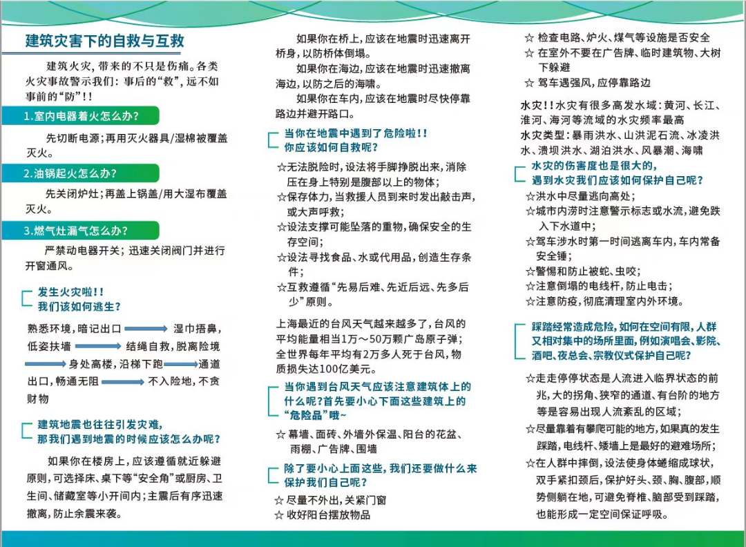 “建筑災(zāi)害下的自救與互救”專題科普,介紹了火災(zāi)、地震、恐怖襲擊、踩踏、風(fēng)災(zāi)、水災(zāi)等災(zāi)害對建筑帶來的危害,仔細(xì)講解了不同災(zāi)害下的各種自救與互救辦法,并特別為各位同學(xué)總結(jié)了一些容易記憶的逃生口訣,比如:在火災(zāi)時要“視金錢如糞土”,如果身上著火必須“連滾帶爬”,逃生時注意“用濕毛巾捂住口鼻”;在地震時應(yīng)該保護(hù)頭部,被困時也要堅定信念等待救援。講解針對受眾進(jìn)行形象生動的演繹,過程中,參加活動的小學(xué)生們踴躍回答問題,積極參與討論。