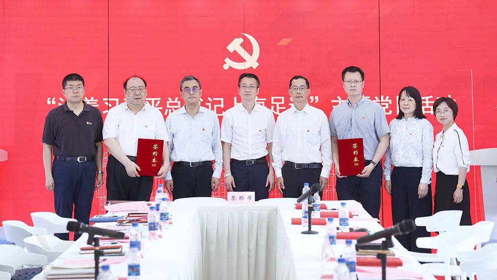 在楊浦濱江綠之丘的“新時代上?;ヂ?lián)網(wǎng)企業(yè)黨建創(chuàng)新實踐基地”,聯(lián)建各方開展了座談交流暨黨建聯(lián)建協(xié)議簽訂儀式。孫堅、楊建榮分別代表市住建委節(jié)能建材處黨支部和市建科院黨委在共建協(xié)議書上簽字,季權(quán)、陳寧、李向民等共同見證。
