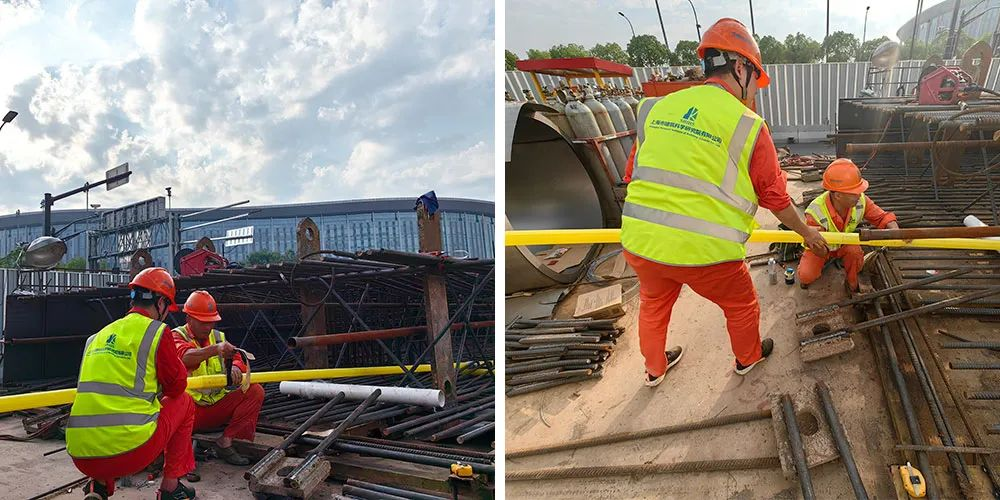 結構所研創(chuàng)團隊頭頂烈日,奮戰(zhàn)在浦東機場南區(qū)地下交通樞紐及配套工程重型盤扣式支模體系承載性能試驗項目中,開展重型盤扣式支模體系承載性能試驗,為浦東機場南區(qū)地下交通樞紐及配套工程支模體系的設計和應用提供技術支撐。