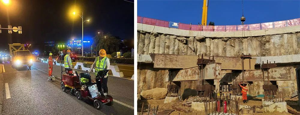 交通所巖土團隊不懼烈日,不舍晝夜。白天,他們身著厚厚的焊工服,在日照“黃海之眼”進行項目試樁檢測,項目水平靜載噸位大,試驗工況復雜,技術難度高,國內尚無類似工程案例。夜間,他們投入高強度脫空檢測服務,全力排除城市道路塌陷脫空隱患,步行檢測每一寸道路,在黑夜中細致入微地記錄和評估道路情況,以確保及時發(fā)現(xiàn)安全隱患。