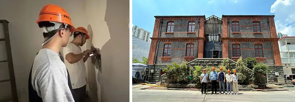 更新所評估咨詢中心團隊冒酷暑、戰(zhàn)高溫,在入伏的第二天前往莫干山路120號對四幢優(yōu)秀歷史建筑進行質量綜合檢測工作。檢測人員在烈日下考證房屋特色部位工藝做法,在空置已久、密閉的房間內,不畏高溫與蚊蟲,仔細調查外飾面材質、材性強度等,為后續(xù)修繕提供詳細基礎資料,推進項目進程。