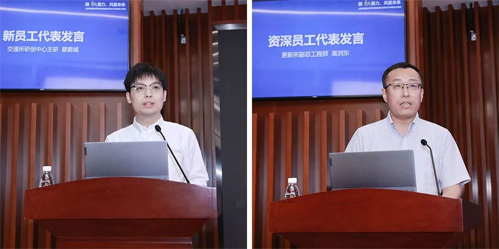 交通市政與勘測(cè)運(yùn)維研究所博士蔡爵威代表新員工發(fā)言,他通過“轉(zhuǎn)變、實(shí)踐、使命”三個(gè)關(guān)鍵詞分享了他作為新員工在建科的體驗(yàn)和收獲,承擔(dān)起企業(yè)與社會(huì)責(zé)任的心路歷程,也勉勵(lì)了在場(chǎng)的新員工為建科院和城市的未來貢獻(xiàn)自己的力量。