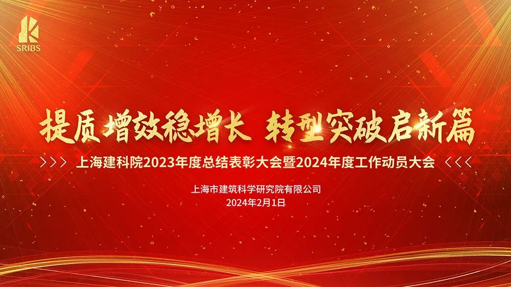 2月1日,上海市建筑科學(xué)研究院有限公司“提質(zhì)增效穩(wěn)增長 轉(zhuǎn)型突破啟新篇”2023年度總結(jié)表彰暨2024年工作動員會在莘莊10號樓三樓報告廳舉行。上海建科集團總工程師周紅波,建科院領(lǐng)導(dǎo)班子、監(jiān)事全體出席會議。各研究所班子、職能部門主要負(fù)責(zé)人及部分員工代表到場參會,各滬外區(qū)域及一線員工同步觀看了會議視頻直播。