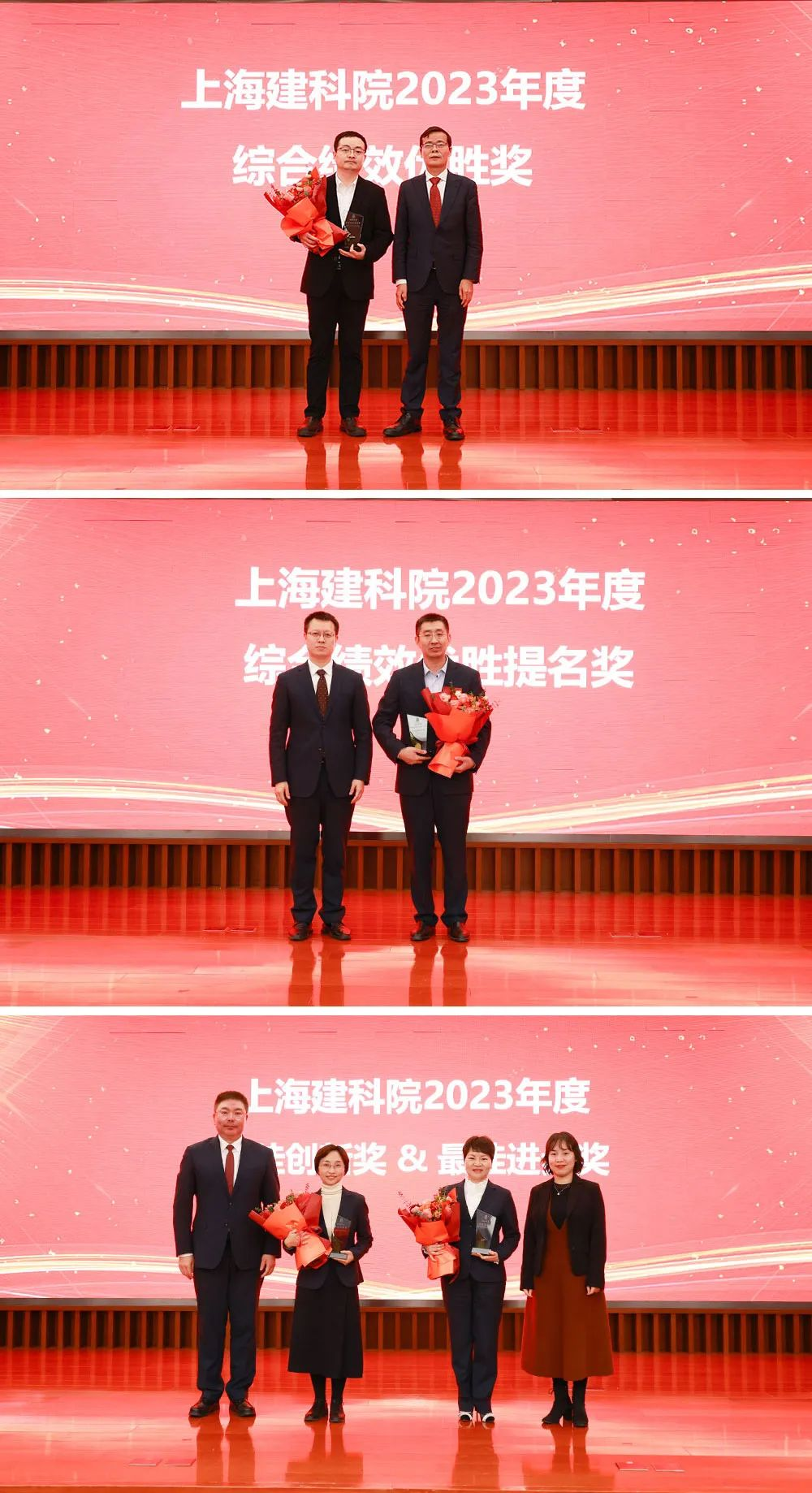 2023年,建科院取得的累累碩果和持續(xù)發(fā)展離不開每一位員工的拼搏堅守、愛崗奉獻(xiàn)。集團領(lǐng)導(dǎo)、建科院班子為獲獎團隊和員工頒獎。