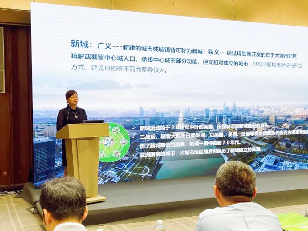 上海建科集團(tuán)股份有限公司有限公司副總工程師韓繼紅作《新城環(huán)境品質(zhì)提升發(fā)展策略》專題發(fā)言,以上海市十四五期間重點發(fā)展的五個新城為例,分享新城在環(huán)境品質(zhì)提升方面的發(fā)展策略,提出“藍(lán)綠為底、宜居為本、低碳為要、數(shù)字賦能、韌性為基”的發(fā)展內(nèi)涵,為上海乃至全國的新城建設(shè)提供了發(fā)展方向。