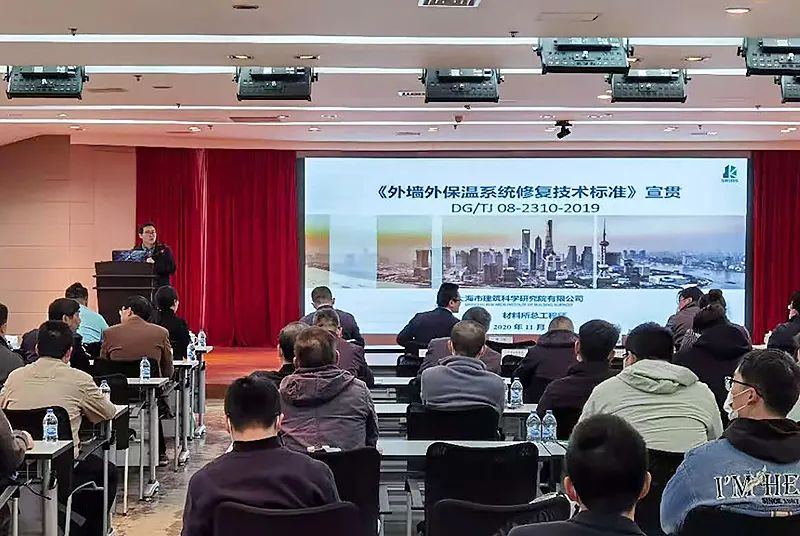 上海建科院材料所總工程師陳寧代表標(biāo)準(zhǔn)編制組,對《標(biāo)準(zhǔn)》的編制背景、編制思路、標(biāo)準(zhǔn)內(nèi)容及工程應(yīng)用等進(jìn)行了介紹和解讀。針對本市外墻外保溫系統(tǒng)特點(diǎn),標(biāo)準(zhǔn)編制過程確立了四個原則:一是兼顧安全與節(jié)能;二是建立系統(tǒng)與各層材料相結(jié)合的檢測評估技術(shù);三是基于評估結(jié)果制定有針對性的修復(fù)技術(shù)方案;四是確保修復(fù)技術(shù)方案的高效、環(huán)保、耐久和少擾民。會上對標(biāo)準(zhǔn)的總則、術(shù)語、基本規(guī)定、檢測與評估、系統(tǒng)及材料、設(shè)計(jì)、施工和驗(yàn)收等八個章節(jié)及附錄,進(jìn)行了條文講解,重點(diǎn)介紹了技術(shù)指標(biāo)的試驗(yàn)和工程驗(yàn)證、外墻外保溫系統(tǒng)質(zhì)量技術(shù)狀況評估方法、各種修復(fù)技術(shù)特點(diǎn)及其適用范圍,以及依據(jù)評估結(jié)果確定修復(fù)技術(shù)的有關(guān)規(guī)定。