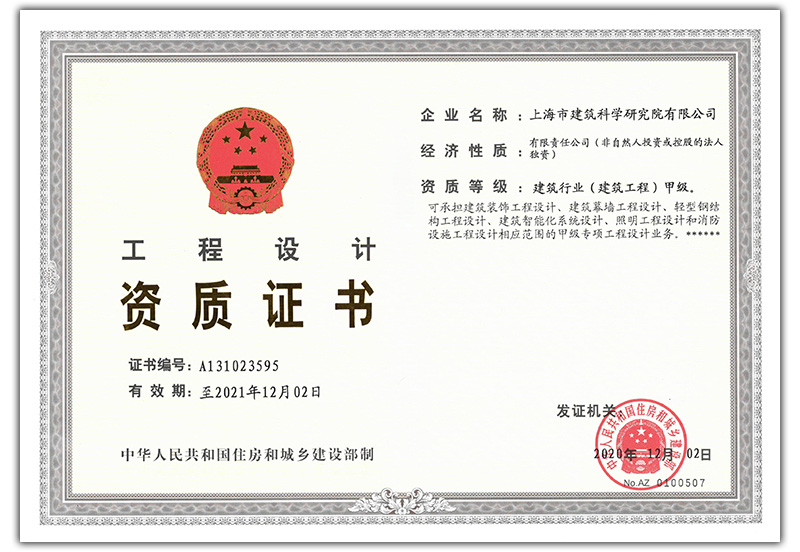 近日,上海市建筑科學(xué)研究院有限公司獲得住建部核發(fā)的“建筑行業(yè)(建筑工程)甲級(jí)”工程設(shè)計(jì)資質(zhì)證書,上海建科院子公司上海建科廣申建筑設(shè)計(jì)有限公司設(shè)計(jì)資質(zhì)上移工作順利完成。