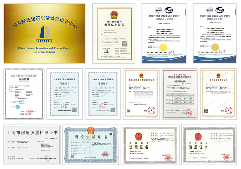 上海建科院擁有各類國(guó)家和部、市級(jí)資質(zhì)及認(rèn)可67項(xiàng),包括國(guó)家綠色建筑質(zhì)量監(jiān)督檢驗(yàn)中心、國(guó)家民用建筑能效測(cè)評(píng)機(jī)構(gòu)、交通部公路工程綜合甲級(jí)和橋梁隧道工程專項(xiàng)檢測(cè)資質(zhì)、上海市房屋質(zhì)量檢測(cè)資質(zhì)、上海市建設(shè)工程質(zhì)量檢測(cè)機(jī)構(gòu)資質(zhì)、中國(guó)特種設(shè)備檢驗(yàn)檢測(cè)核準(zhǔn)證、甲級(jí)建筑設(shè)計(jì)資質(zhì)、甲級(jí)測(cè)繪資質(zhì)、甲級(jí)工程勘察資質(zhì)等。