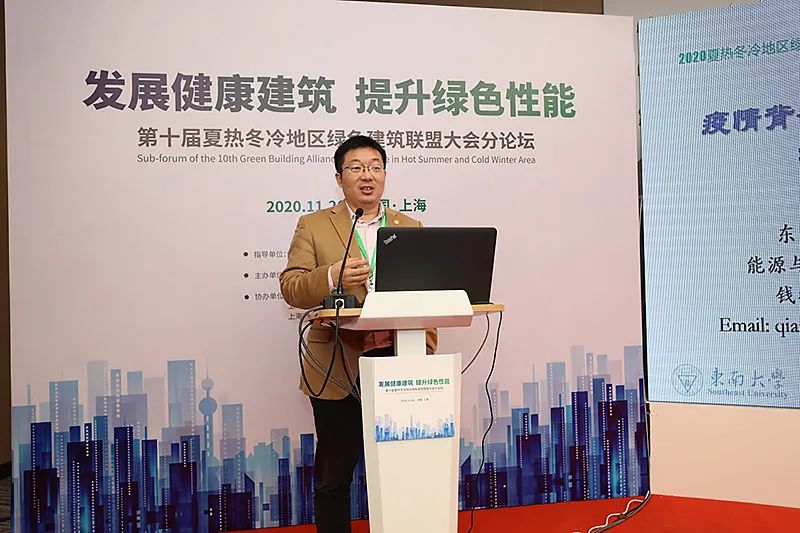 東南大學(xué)錢華教授作了主題為《疫情背景下健康室內(nèi)環(huán)境研究》的發(fā)言,從室內(nèi)集中爆發(fā)的案例出發(fā),描述新冠傳播的特征和環(huán)境影響的因素,探討人呼出飛沫特點(diǎn)、室內(nèi)通風(fēng)量、氣流組織等的影響。并就醫(yī)療環(huán)境中新冠病毒的現(xiàn)場采樣結(jié)果,分析醫(yī)療環(huán)境中新冠的危險(xiǎn)因素,以期提供有效的工程控制方法和日常的注意事項(xiàng)。