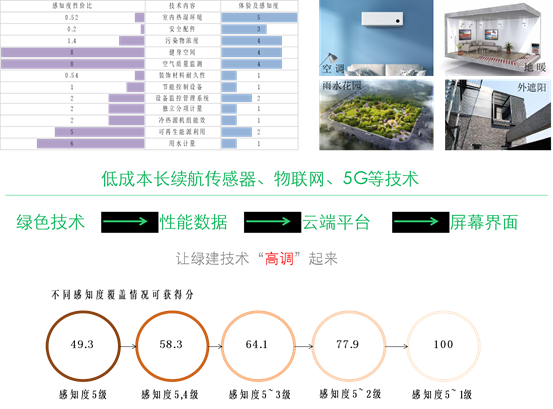 本報(bào)告從感知度角度,對(duì)綠色建筑的所有技術(shù)條文進(jìn)行了遍歷分析,為綠色建筑條文進(jìn)行了從1-5星的打分(5星最高),并基于感知度和投資增量分析了可感知度的性價(jià)比。本研究獨(dú)特的視角為開發(fā)建設(shè)單位合理設(shè)計(jì)用戶體驗(yàn)并確定投資范圍具有直接的指導(dǎo)價(jià)值,為促進(jìn)綠色建筑的市場(chǎng)認(rèn)可和良性互動(dòng)具有積極作用。