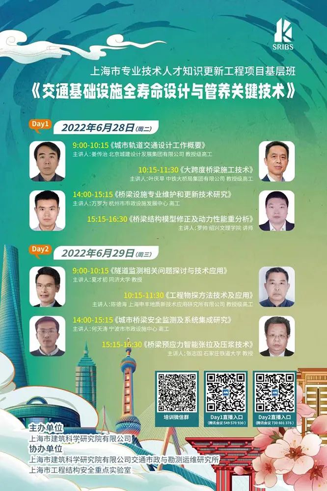 近日,根據(jù)上海市人力資源和社會保障局《關(guān)于2021年上海市專業(yè)技術(shù)人才知識更新工程項目的通知》(滬人社專[2021]179號文件)要求,為促進(jìn)本市交通基礎(chǔ)設(shè)施專業(yè)技術(shù)人員的繼續(xù)教育工作,加速知識更新工程的實施,推動產(chǎn)業(yè)板塊相互交流學(xué)習(xí),上海市建筑科學(xué)研究院有限公司作為主辦單位,舉辦了“交通基礎(chǔ)設(shè)施全壽命設(shè)計與管養(yǎng)關(guān)鍵技術(shù)”上海市專業(yè)技術(shù)人才知識更新工程項目基層專業(yè)技術(shù)人員培訓(xùn)班。上海市工程結(jié)構(gòu)安全重點實驗室、建科院交通市政與勘測運維研究所協(xié)辦。來自檢測咨詢、勘察設(shè)計、施工建造、高校等多家單位的近200名技術(shù)骨干參加了本次培訓(xùn)。建科院黨委副書記、副總經(jīng)理(主持工作)趙榮欣出席了開班儀式并致辭。