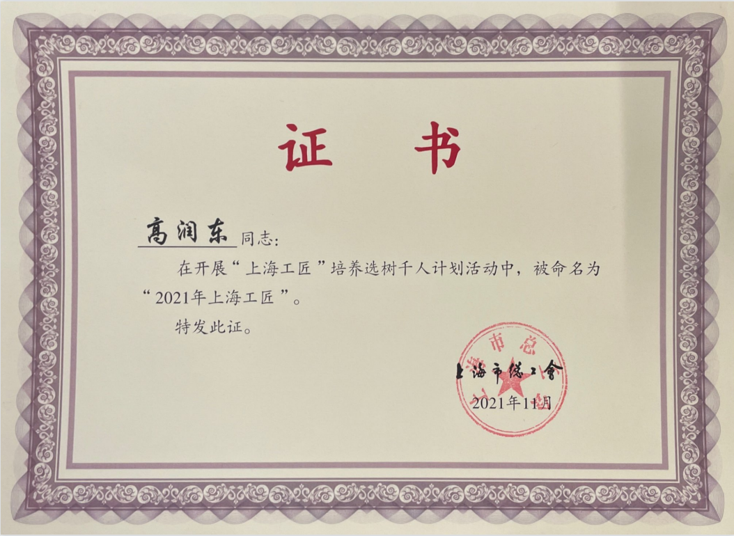 近日,在市總工會召開的2022年加快經(jīng)濟(jì)恢復(fù)和重振暨“建功‘十四五’ 奮進(jìn)新征程”上海職工勞動和技能競賽推進(jìn)會上,選樹命名了103位2021年上海工匠,其中上海市建筑科學(xué)研究院有限公司高潤東榮獲2021年“上海工匠”稱號。