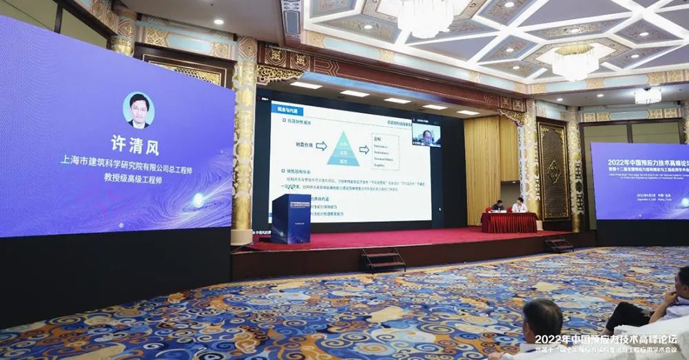 2022年9月3日,由中國工程院土木、水利與建筑工程學部主辦,北京科技大學、中國鋼結構協(xié)會、中國工程建設標準化協(xié)會、中冶建筑研究總院有限公司和《工業(yè)建筑》雜志社有限公司承辦的“2022中國預應力技術高峰論壇暨第十二屆全國預應力結構理論與工程應用學術會議”在北京友誼賓館舉行,27名院士、近300位國內外專家學者參加了本次論壇,1萬余人參與了線上互動。上海市建筑科學研究院有限公司總工程師許清風受邀參會并作大會報告。