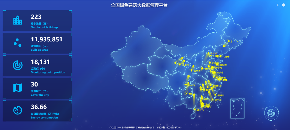 項(xiàng)目以綠色建筑全過程運(yùn)行大數(shù)據(jù)為基礎(chǔ),構(gòu)建了全國綠色建筑大數(shù)據(jù)管理平臺并進(jìn)行示范應(yīng)用,實(shí)現(xiàn)了建筑不同來源、不同類型數(shù)據(jù)信息的有效融合,提出了海量數(shù)據(jù)的利用方法與技術(shù),最大限度地挖掘建筑能耗大數(shù)據(jù)的價值,以信息化手段為傳統(tǒng)樓宇運(yùn)行管理賦能。平臺已聯(lián)網(wǎng)示范工程222棟,建筑面積1190余萬平方米,監(jiān)測點(diǎn)18000余個,分布在全國30個城市,覆蓋五大氣候區(qū),涵蓋辦公建筑、商場建筑、旅游飯店建筑、教育建筑、醫(yī)療衛(wèi)生建筑等主要建筑類型,起到了良好的示范效果,為建筑綠色運(yùn)行提供了有效的管理工具。同時,通過數(shù)據(jù)的不斷積累,將形成建筑運(yùn)行管理知識庫,能夠?yàn)樾袠I(yè)專家提供專項(xiàng)數(shù)據(jù)分析,為政府部門提供決策咨詢支持,具有廣闊的應(yīng)用前景,對促進(jìn)節(jié)能減排、實(shí)現(xiàn)雙碳目標(biāo)將發(fā)揮重要的作用。