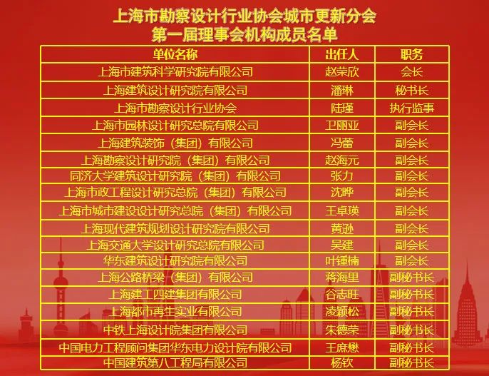 經(jīng)大會表決,正式通過了《上海市勘察設(shè)計行業(yè)協(xié)會城市更新分會工作條例》和《上海市勘察設(shè)計行業(yè)協(xié)會城市更新分會選舉辦法》,選舉產(chǎn)生了上海市勘察設(shè)計行業(yè)協(xié)會城市更新分會第一屆理事會會長、副會長、秘書長、副秘書長、執(zhí)行監(jiān)事。