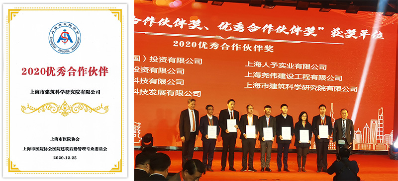 2020年12月25日,上海市醫(yī)院協(xié)會醫(yī)院建筑后勤管理專業(yè)委員會“2020年度總結暨抗疫先進表彰大會”在上海市第十人民醫(yī)院舉行,上海市建筑科學研究院有限公司獲得“2020優(yōu)秀合作伙伴”榮譽稱號,建筑節(jié)能與能效提升研究所副所長何曉燕代表單位領獎。該項榮譽主要授予為本市醫(yī)院基建后勤事業(yè)做出突出貢獻的合作企業(yè),本次獲授是上海建科院繼2019年后再度獲此殊榮。