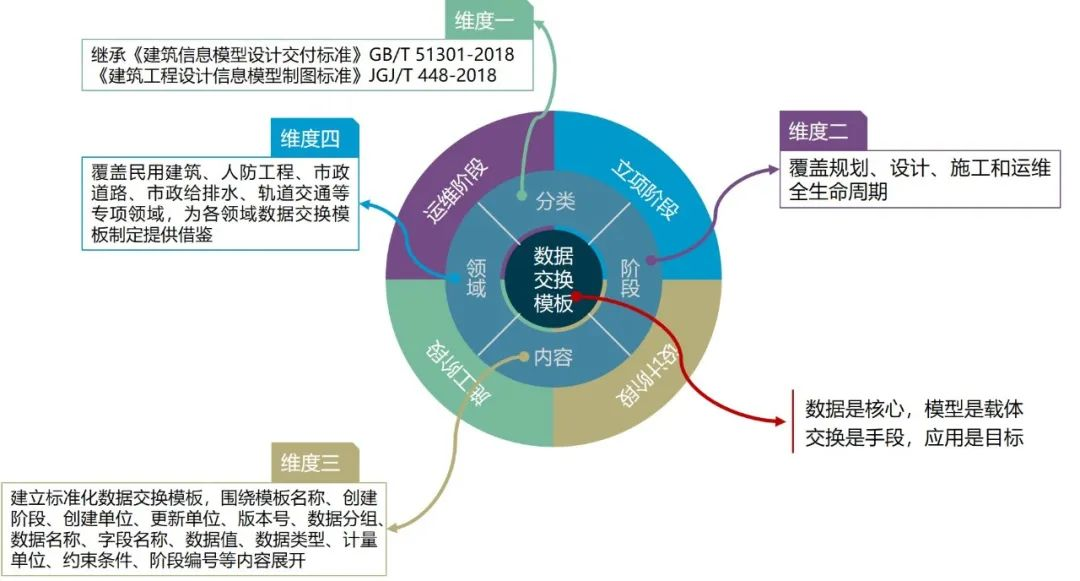 本標(biāo)準(zhǔn)結(jié)合行業(yè)制圖規(guī)范及國(guó)際數(shù)據(jù)交換要求,提出了以交換模板為核心的交換數(shù)據(jù)結(jié)構(gòu)化,明確了分類(lèi)對(duì)象、工程階段、責(zé)任單位、更新主體、交換動(dòng)作、數(shù)據(jù)分組、數(shù)據(jù)名稱、數(shù)據(jù)值、數(shù)據(jù)類(lèi)型、計(jì)量單位、約束條件等數(shù)據(jù)內(nèi)容,提供了建設(shè)工程數(shù)字化資產(chǎn)的數(shù)據(jù)基礎(chǔ)。