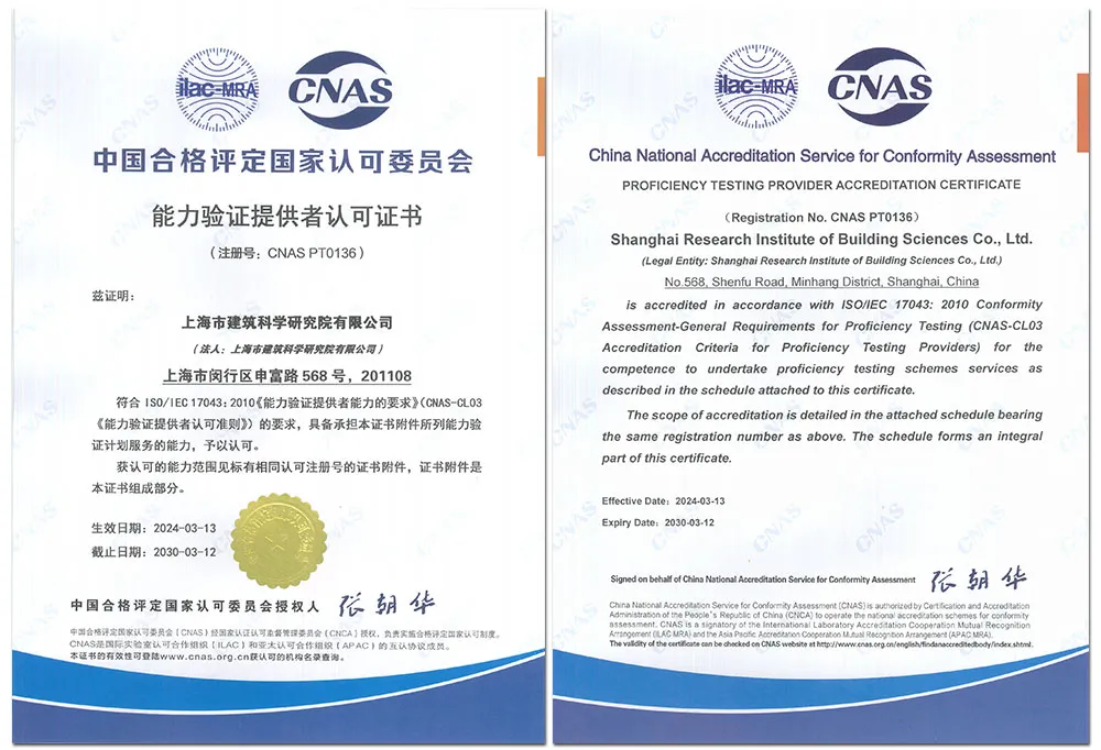 近日,上海市建筑科學(xué)研究院有限公司經(jīng)中國(guó)合格評(píng)定國(guó)家認(rèn)可委員會(huì)批準(zhǔn),喜獲CNAS能力驗(yàn)證提供者認(rèn)可證書(注冊(cè)號(hào):CNAS PT0136)。該項(xiàng)資質(zhì)的獲取標(biāo)志著上海建科院在建工建材領(lǐng)域已具有評(píng)定實(shí)驗(yàn)室從事檢測(cè)或測(cè)量的能力及監(jiān)視實(shí)驗(yàn)室的持續(xù)能力。上海建科院將充分利用能力驗(yàn)證提供者的平臺(tái),持續(xù)擴(kuò)大能力驗(yàn)證提供者的領(lǐng)域和能力范圍,為行業(yè)發(fā)展出一份力量、作一份貢獻(xiàn)。