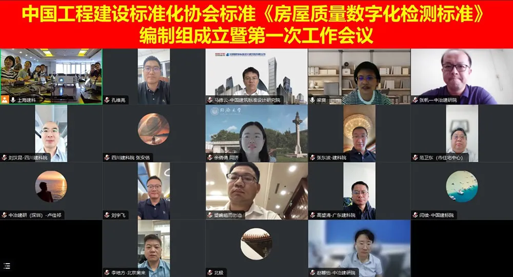 6月28日,由上海市建筑科學(xué)研究院有限公司主編的中國工程建設(shè)標準化協(xié)會標準《房屋質(zhì)量數(shù)字化檢測標準》編制組成立暨第一次工作會議在上海采用線上線下相結(jié)合的形式召開。中國工程建設(shè)標準化協(xié)會建筑物鑒定與加固專業(yè)委員會秘書長梁爽、上海建科集團科技創(chuàng)新部副總經(jīng)理(主持工作)王卓琳,上海建科院科研管理部及主參編單位代表共20余人參加會議。會議由上海建科院科研管理部經(jīng)理楊霞主持。