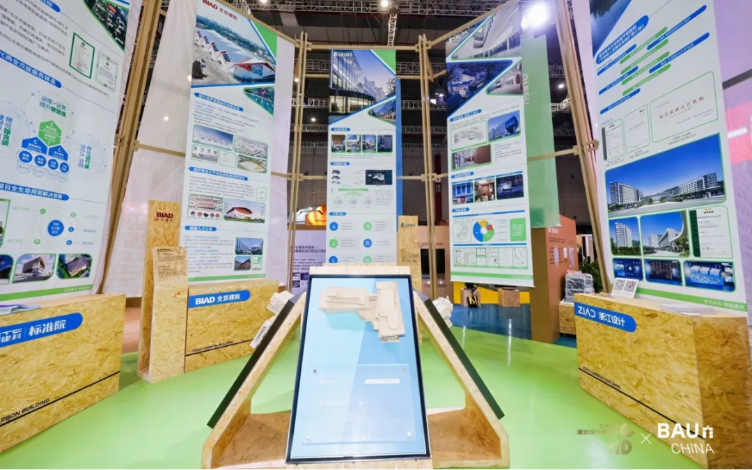 上海建科策劃呈現(xiàn)的“多元共生·零碳建筑”主題展區(qū)利用各類可回收材料搭建展示空間,以零碳建筑知識(shí)體系為先導(dǎo),呈現(xiàn)大量示范性零碳建筑案例,以及各聯(lián)展單位帶來的可持續(xù)建筑體系與技術(shù)集成。