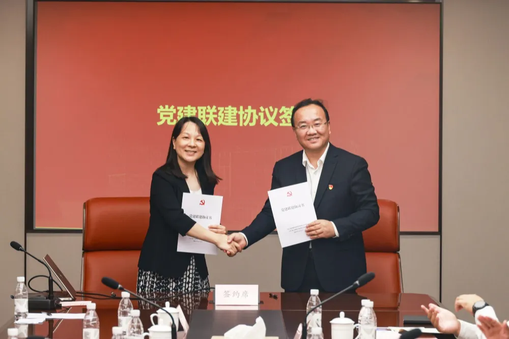 魯長春、張蓓紅分別代表雙方黨委簽訂了黨建聯(lián)建協(xié)議。下一步,將持續(xù)推進互學(xué)互鑒、資源共享,在黨建、低碳建材領(lǐng)域、人才等方面進行深入合作。