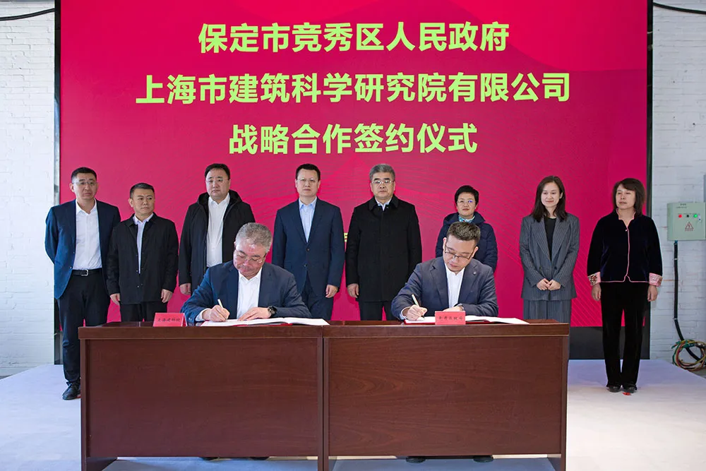 2月8日,上海市建筑科學(xué)研究院有限公司(以下簡(jiǎn)稱”上海建科院”)與保定市競(jìng)秀區(qū)人民政府戰(zhàn)略合作簽約暨上海建科院河北分公司揭牌儀式在競(jìng)秀區(qū)元宇宙產(chǎn)業(yè)園舉行。保定市競(jìng)秀區(qū)委書記劉相偉,區(qū)長(zhǎng)付建賓,市住建局副局長(zhǎng)馬輝,競(jìng)秀區(qū)委常委、區(qū)委辦公室主任高建坤,副區(qū)長(zhǎng)孔震,區(qū)政協(xié)副主席平國弘,上海建科咨詢集團(tuán)市場(chǎng)發(fā)展部總經(jīng)理葛曹燕,上海建科院黨委書記、執(zhí)行董事楊建榮,黨委副書記、總經(jīng)理趙榮欣等出席活動(dòng)。競(jìng)秀區(qū)城市更新領(lǐng)導(dǎo)小組成員單位和上海建科咨詢集團(tuán)京津冀區(qū)域各單位代表,共50余人參加此次活動(dòng)?;顒?dòng)由上海建科院副總經(jīng)理邢云主持。