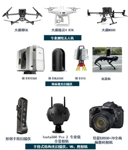 設(shè)備端:配齊無人機、三維激光掃描儀(精度達I級標準)、近景攝影專業(yè)相機,可應對空域管制、狹小空間等復雜場景;