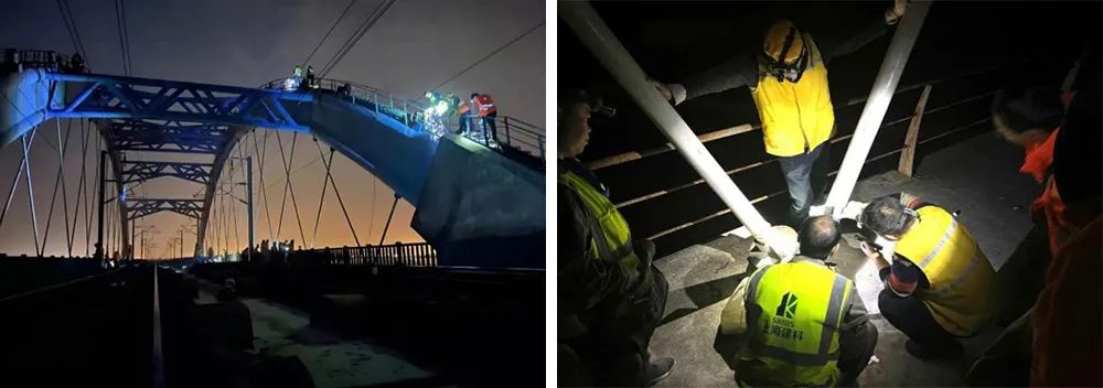 同期,應(yīng)中國鐵路上海局集團有限公司工務(wù)部和下屬的工務(wù)段邀請,上海建科院索結(jié)構(gòu)橋梁專家陳勇介紹了索結(jié)構(gòu)橋梁的檢測維護新技術(shù),并對下屬工務(wù)段提出的管轄范圍內(nèi)的索結(jié)構(gòu)橋梁問題進行了詳細的解答。交流直至凌晨12點結(jié)束,與會人員又上橋觀摩上海建科院針對索結(jié)構(gòu)橋梁檢測的新技術(shù)應(yīng)用現(xiàn)場作業(yè)。